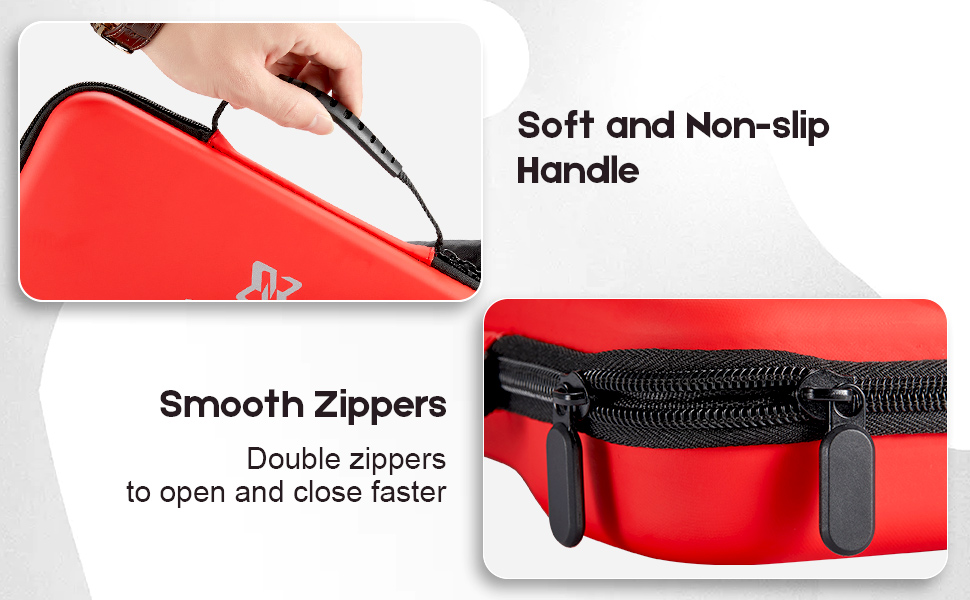 It protects your switch console in an all-around way when you go out or travel. The hard EVA shell prevents extrusion and impacts when you put it in the bags or suitcase, and the anti-slip soft handle is comfortable to carry.