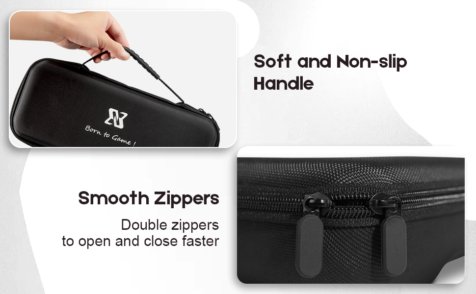 [Protective Carry Case] It protects your switch console in an all-around way when you travel. The rigid EVA shell prevents extrusion and impacts when you put it in the bags or suitcase, and the anti-slip soft handle is comfortable to carry.