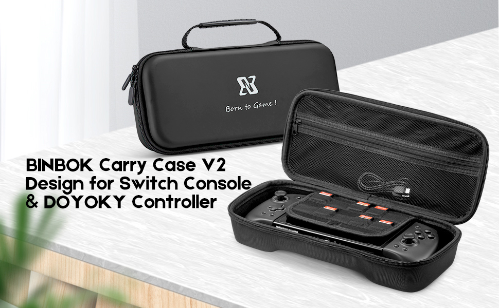 [Portable Switch Case] It is designed to fit the Nintendo Switch & Switch OLED console with both BINBOK/DOYOKY Joycon controllers attached to it, and the inner pocket which can fit extra Cables, joystick caps, and other smaller but essential Nintendo Switch accessories. (Please note: it cannot accommodate larger items like the dock or pro-controllers. And it doesn't fit DOYOKY slim joycon very well, check out our V1 Case for the perfect fit.).
