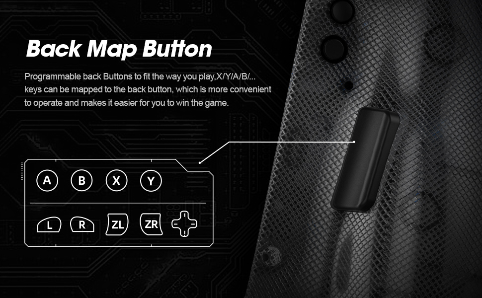 - [Back M Button & 360°Precise Joystick] Adopt a high-quality joystick and bigger M button, the switch joycon controllers make activation accurate and sensitive. X/Y/A/B/... keys can be mapped to the M BUTTON, which is more convenient to operate and makes it easier for you to win the game.